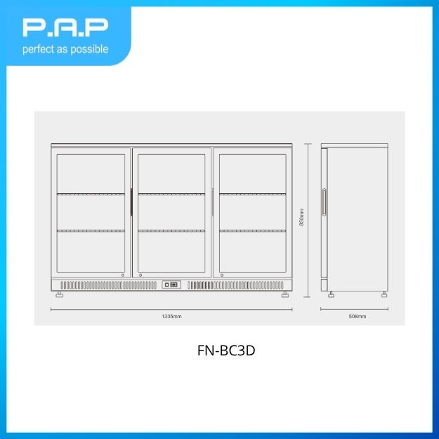 Bottle Cooler 3 cửa FinoCool FN-BC3D là thiết bị lý tưởng để trưng bày chai và các loại đồ uống tại quầy bar, đặc biệt phù hợp cho khu vực FOH (Front of House). Sản phẩm không chỉ giúp không gian F&B trở nên chuyên nghiệp, sang trọng hơn mà còn hỗ trợ tối ưu quy trình vận hành, giúp phục vụ nhanh chóng và nâng cao trải nghiệm khách hàng.
